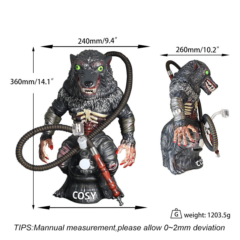 | Description | Unleash the legend of the wolf with the 14.1" Cosy Lunar Wolf Water Pipe. Designed to impress, it comes alive with glowing LED eyes, chilling sound effects, and a moving mouth that adds a touch of realism. Whether you want a Halloween centerpiece or a bold addition to your daily collection, this functional art piece delivers unmatched style and performance. |