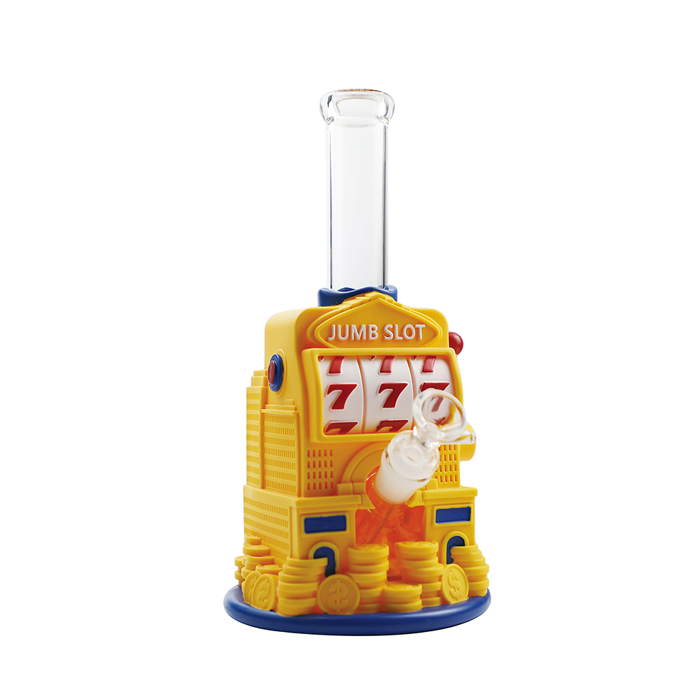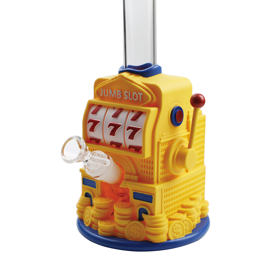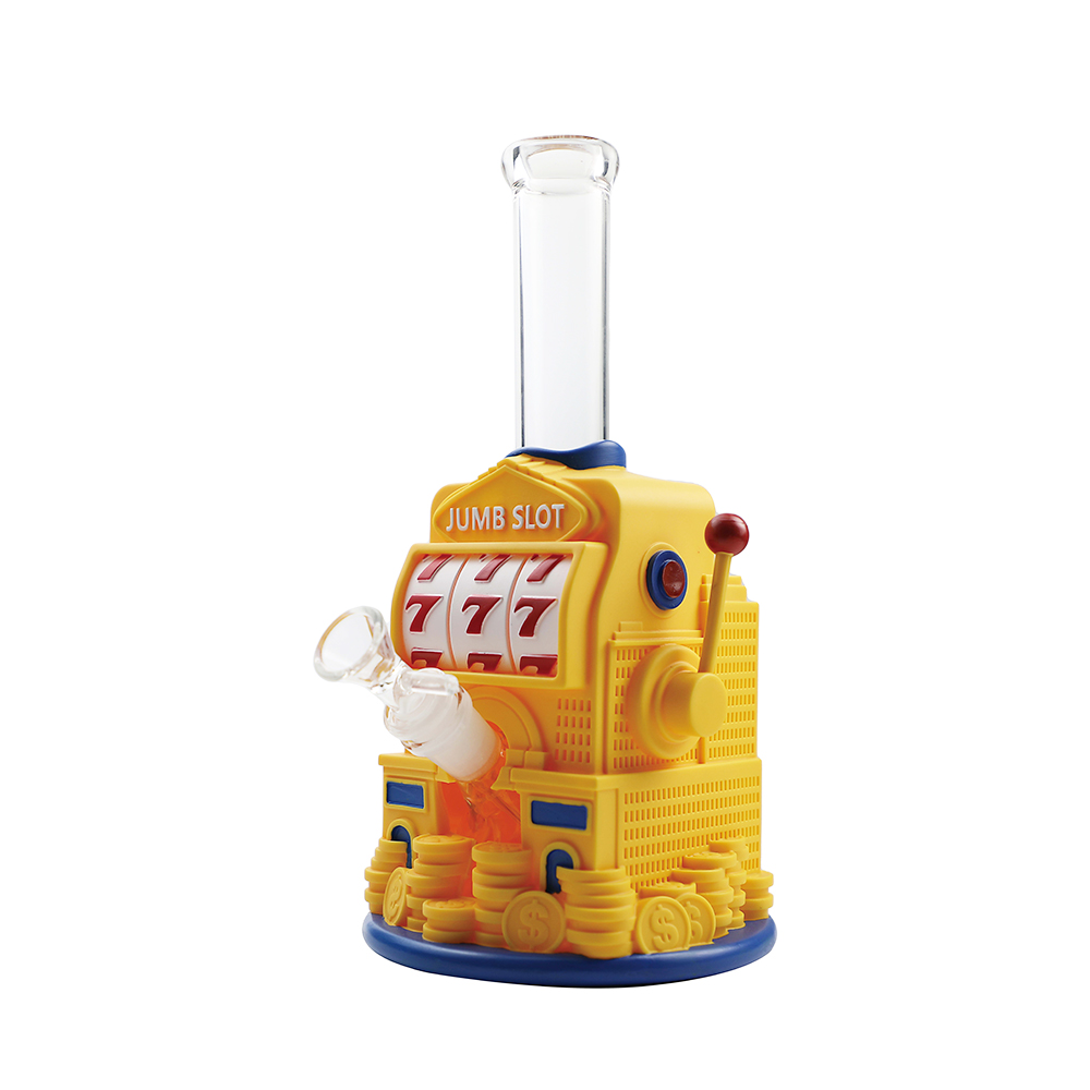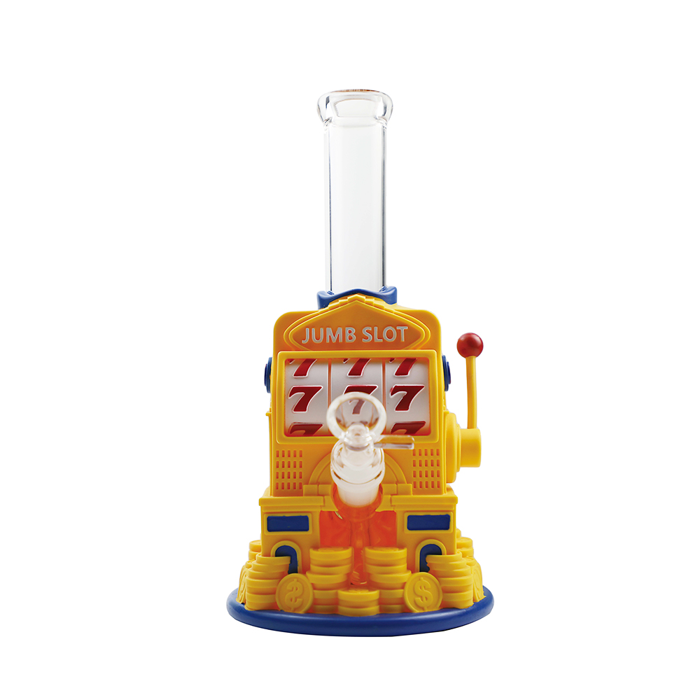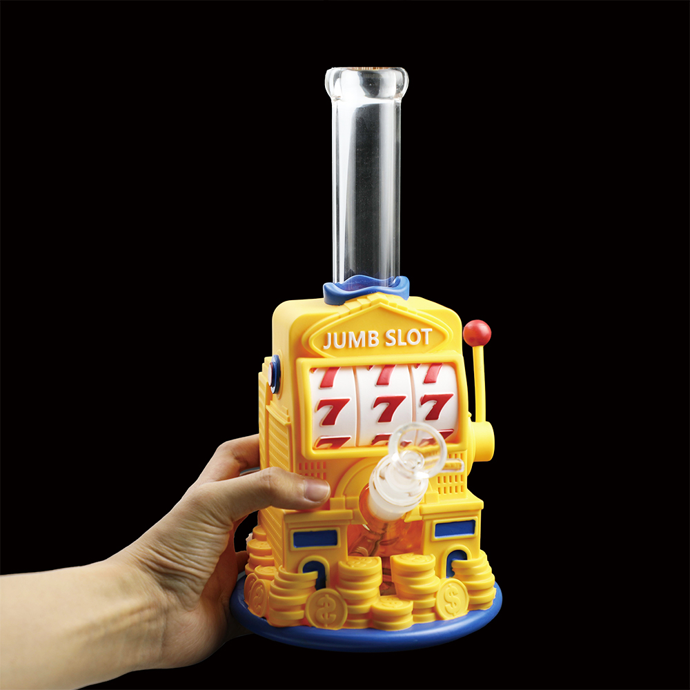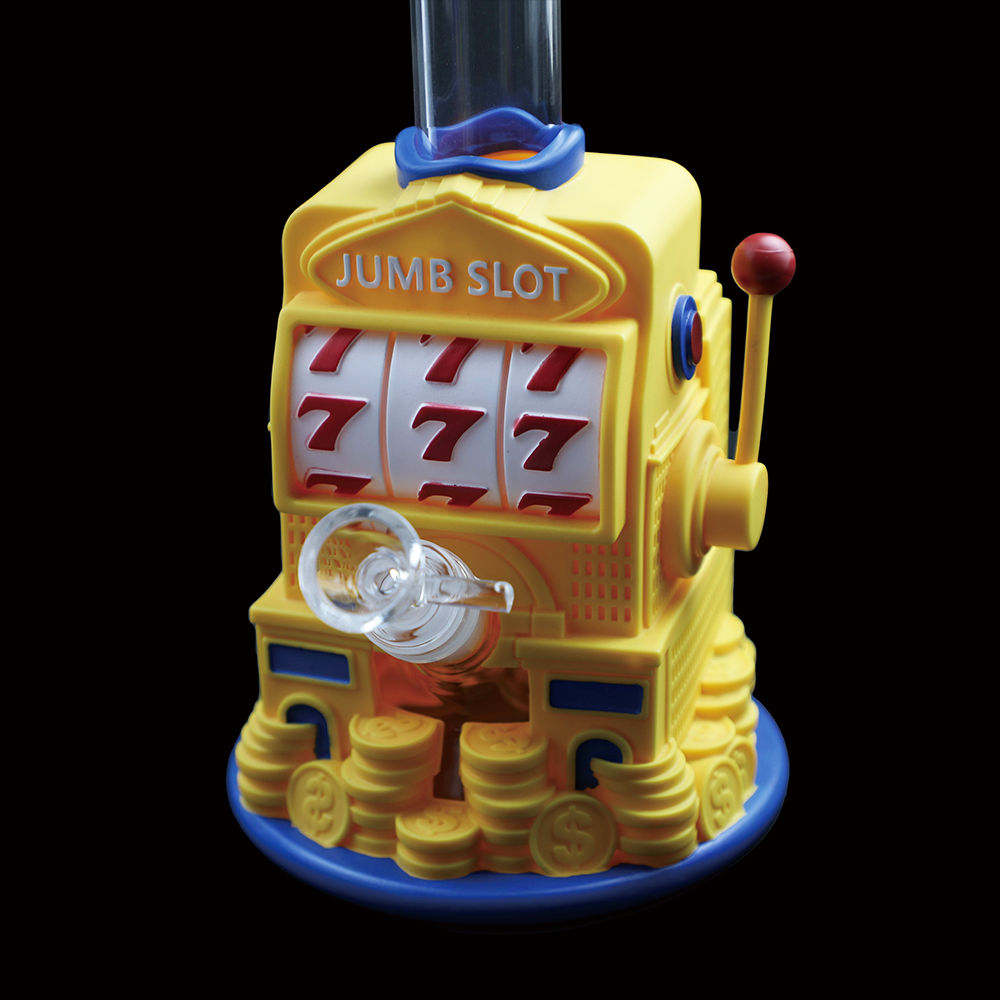 | Description | Hit the jackpot of smooth sessions with our arcade-style water pipe! Designed like a vintage casino lucky machine, this 10.5" showpiece dazzles in golden yellow with authentic reel details. The widened 6.4" base delivers tabletop stability, while the vertical chamber and glass downstem create ultra-cooled rips worthy of a grand prize. |