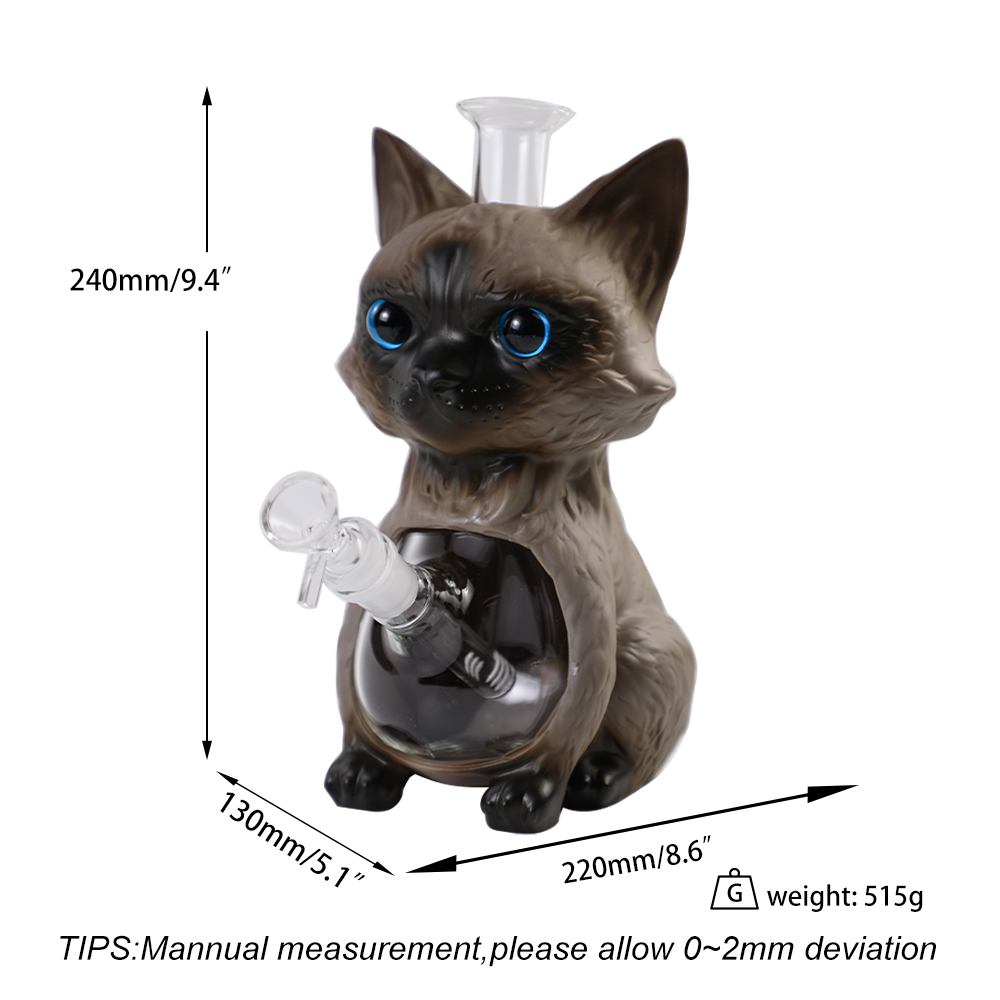 | Description | YHS Smoke 9.4" Siamese cat Water Pipe: This product features an adorable Siamese cat design, depicting a seated brown and black cat with meticulously detailed fur and captivating sparkling blue eyes. Its overall charming appearance exudes the gentle demeanor characteristic of pets, creating a soothing and relaxing atmosphere. Perfect for cat lovers or those seeking a cute, cozy home decor style. |