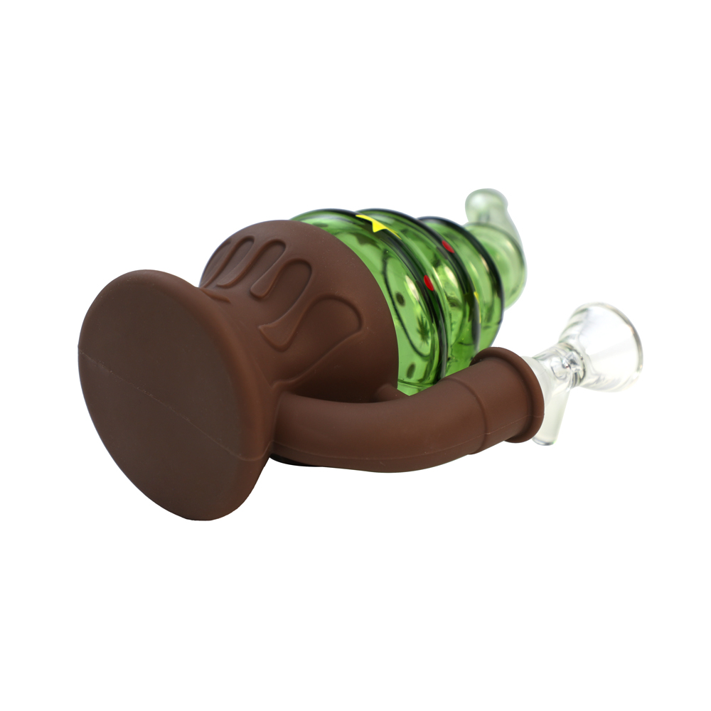 Size:Length: 90mm (3.5″) Width: 62mm (2.4″) Height: 164mm (6.4″) Color:As in picture Material:Silicone+glass Accessories:14MM Glass bowl