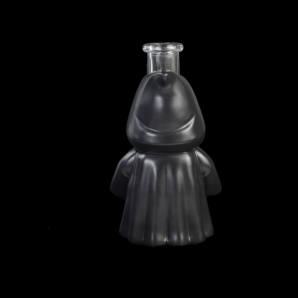 The chubby, rounded body softens the dark theme, making it a versatile piece for various decor styles.