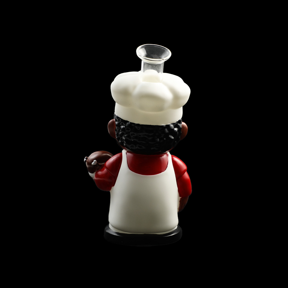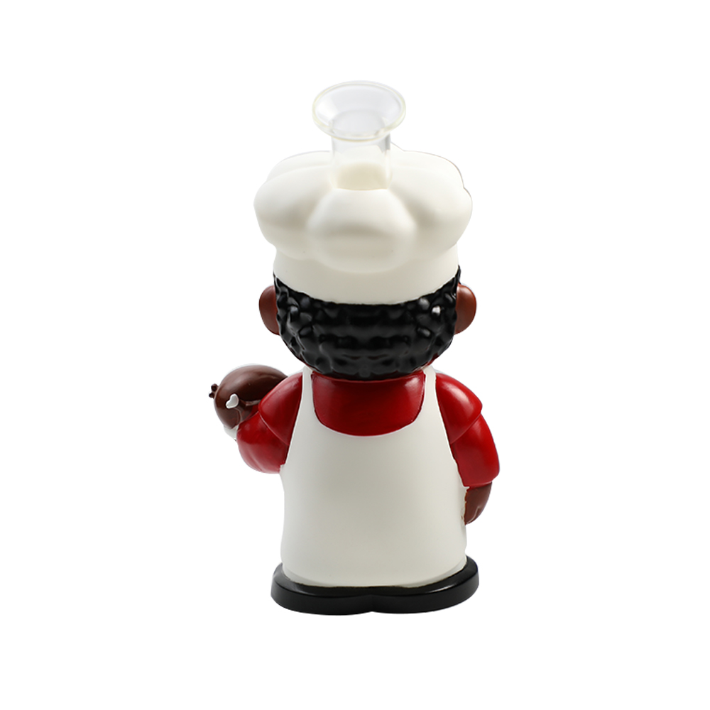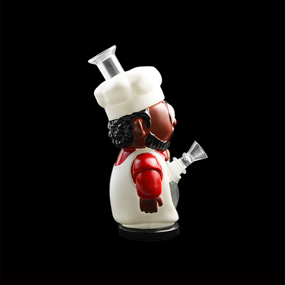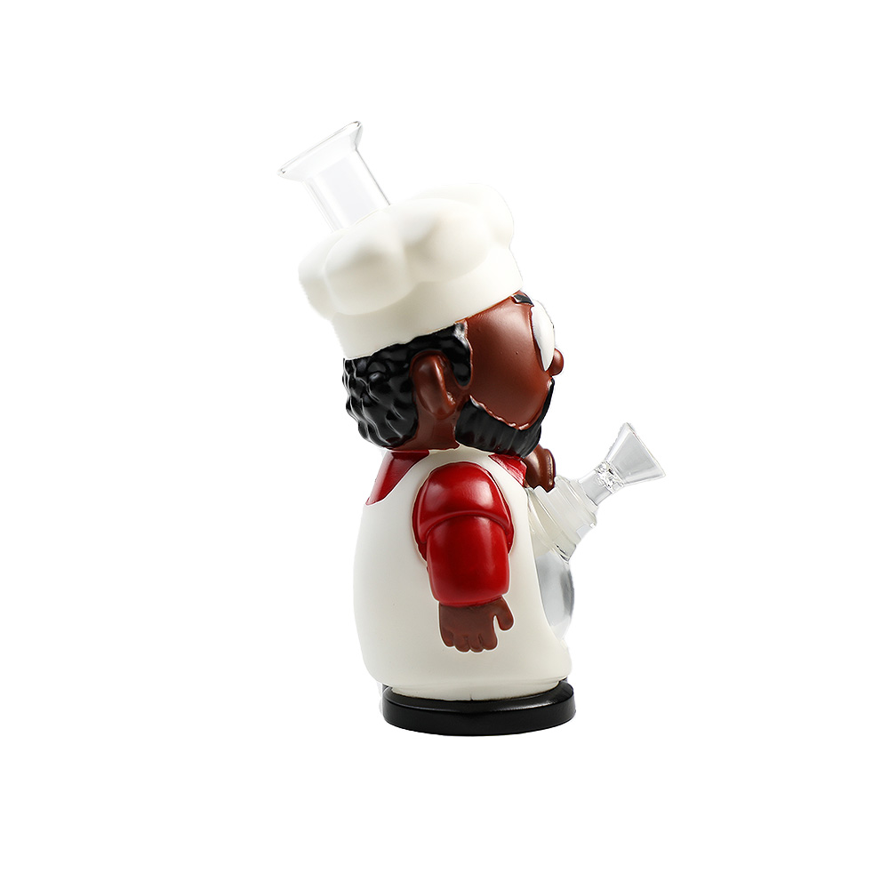 | Description | This white-coated southern chef stands 219mm (8.6") tall with a 136mm (5.3") stabilizing base, crafted from durable PVC and integrated glass components. Includes a 14mm glass bowl and downstem for immediate use, embodying rustic charm in a functional collectible piece. |