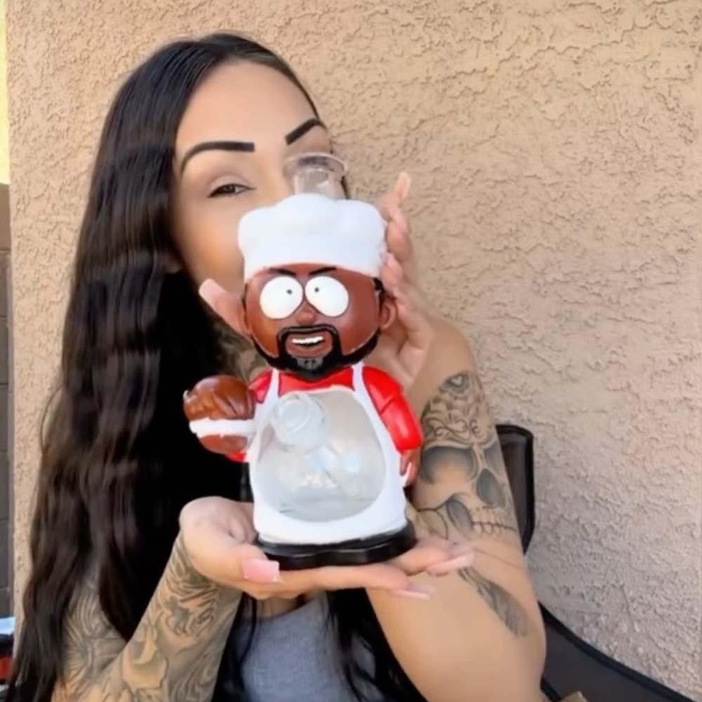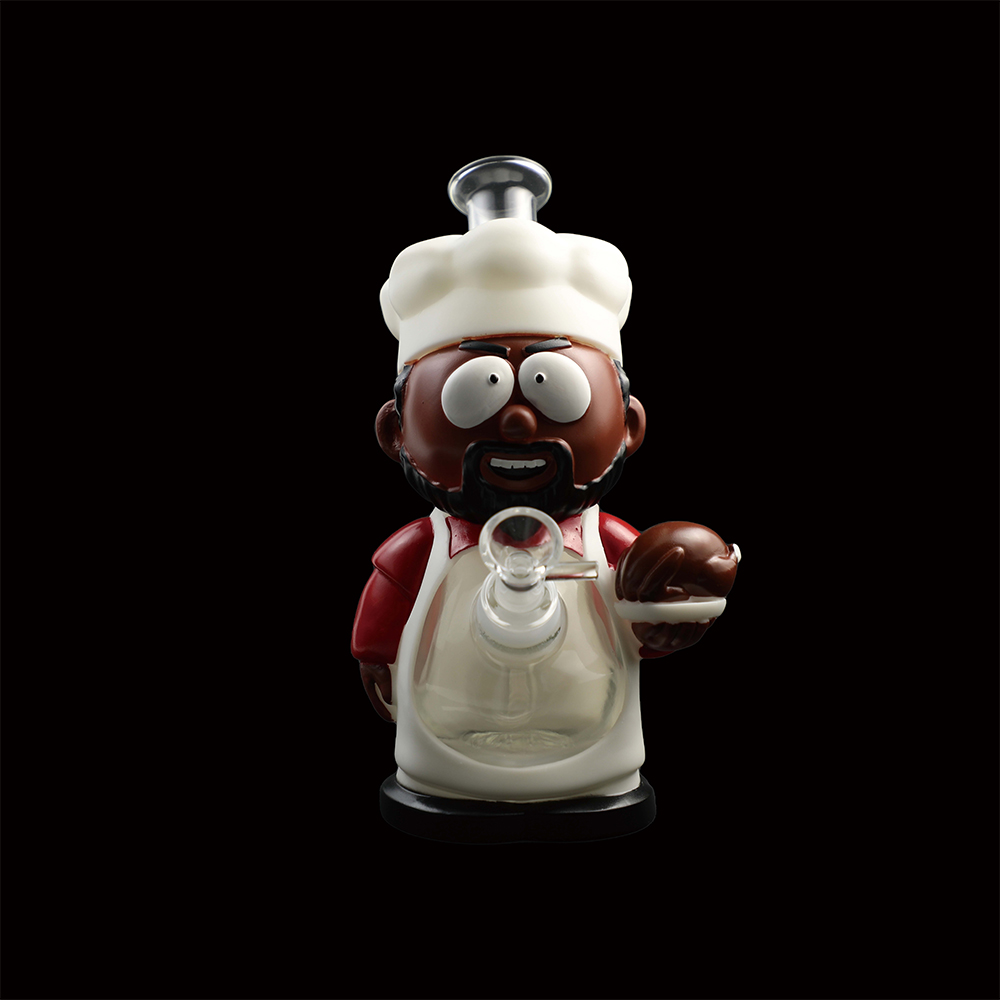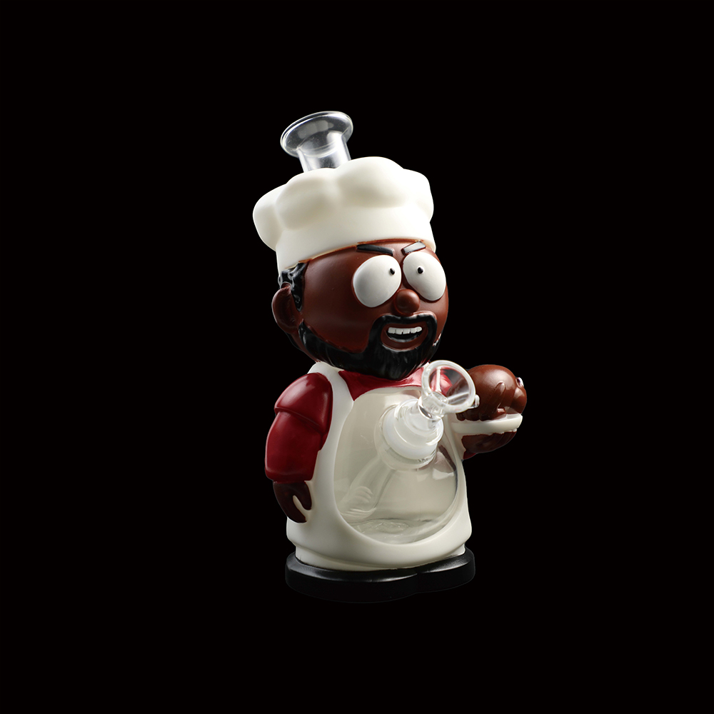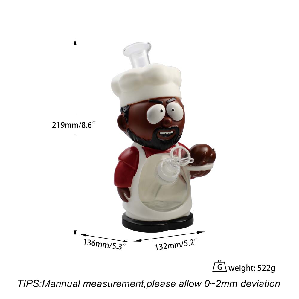 | Description | This white-coated southern chef stands 219mm (8.6") tall with a 136mm (5.3") stabilizing base, crafted from durable PVC and integrated glass components. Includes a 14mm glass bowl and downstem for immediate use, embodying rustic charm in a functional collectible piece. |