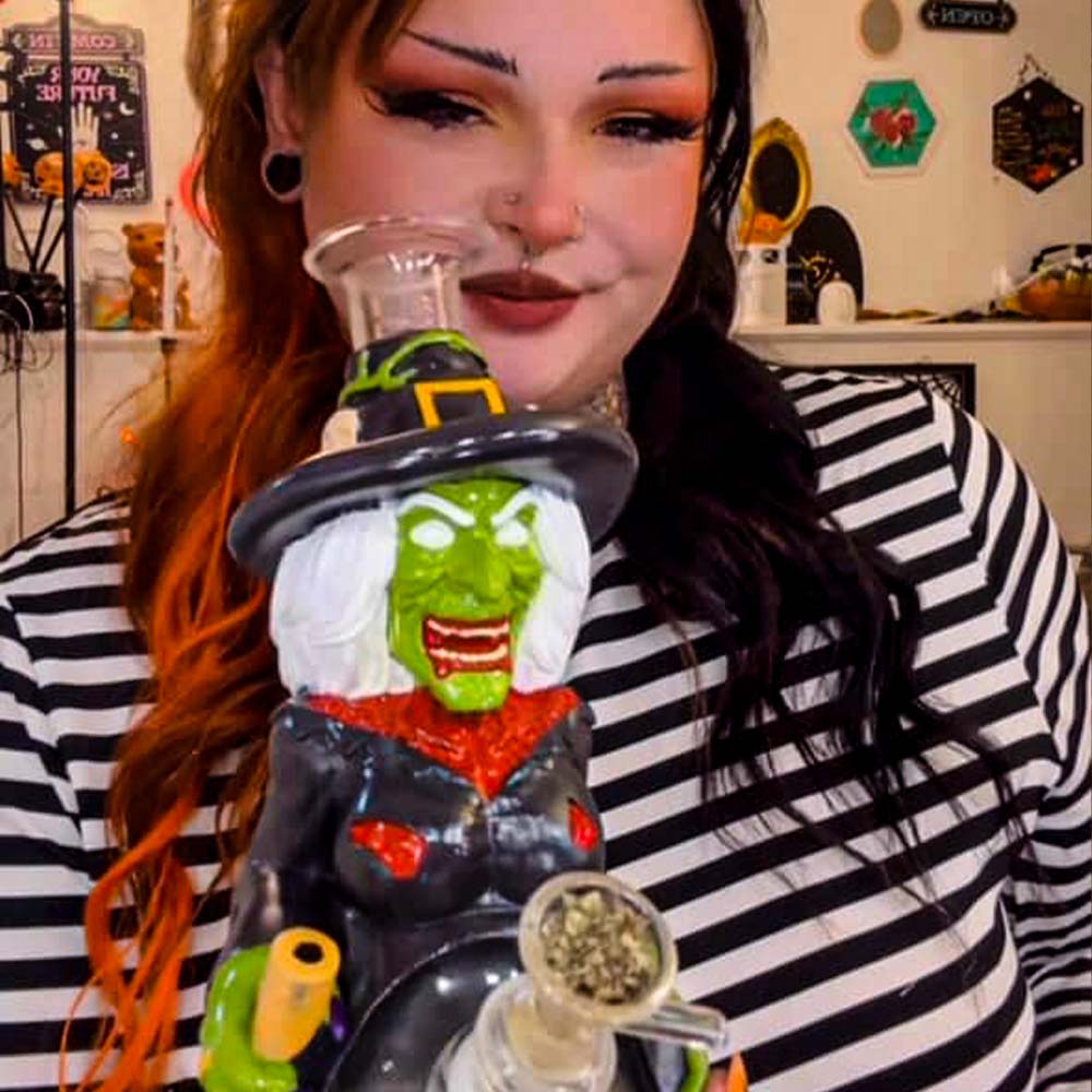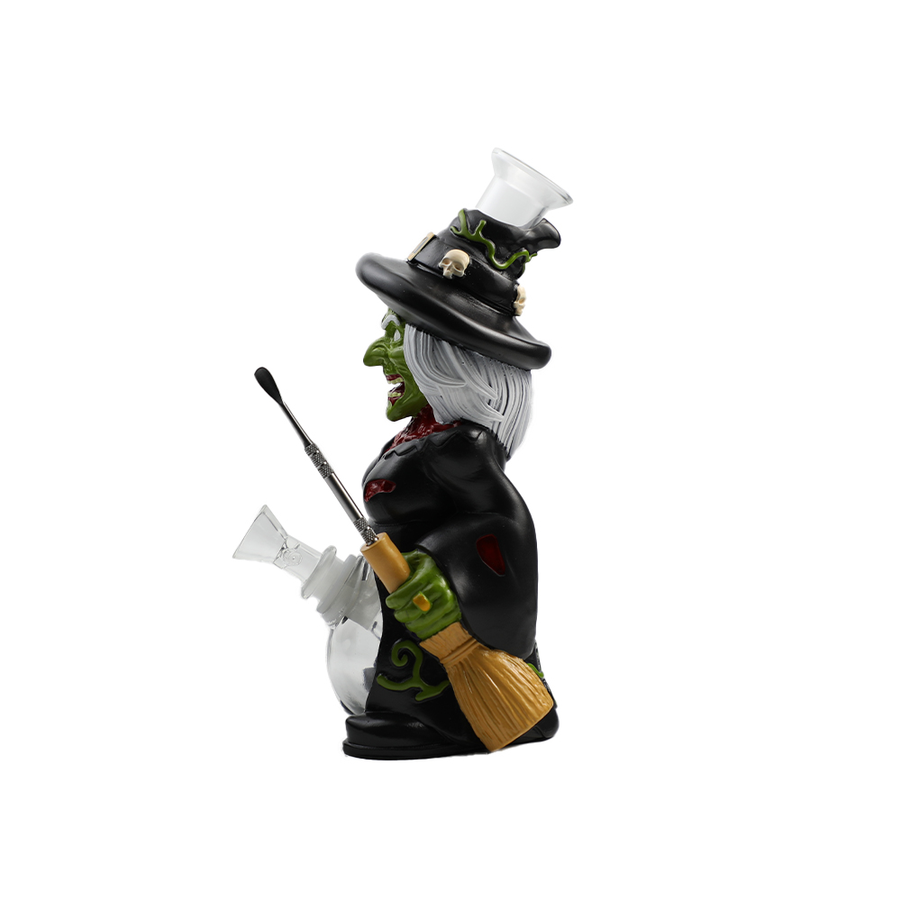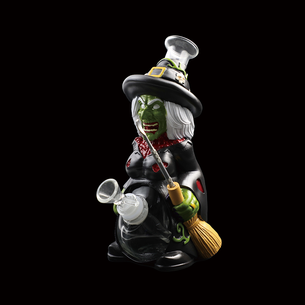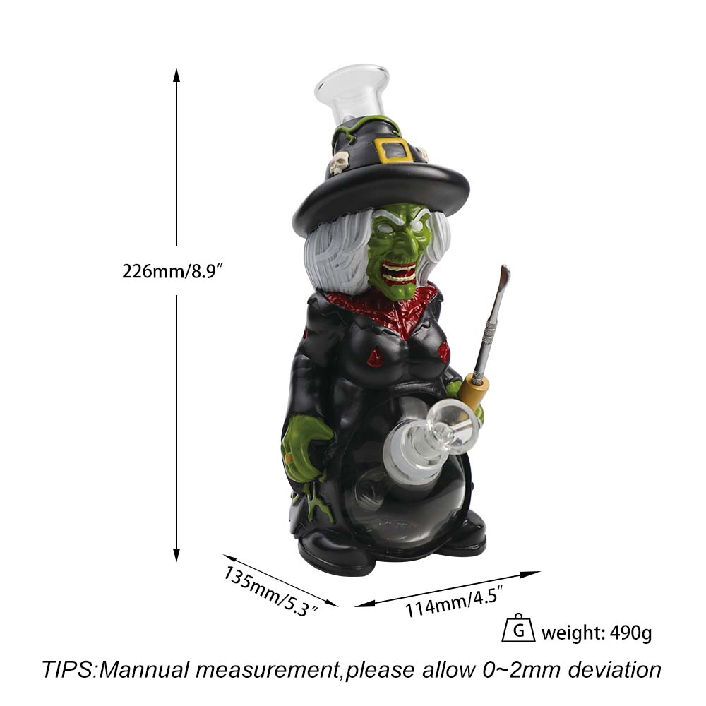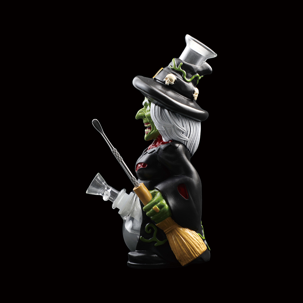 | Description | Emerge from the shadows with this YHS matte-black zombie witch, her twisted silhouette coiled around a 226mm (8.9") PVC body anchored by a 135mm (5.3") weighted base. Integrated glass components and included 14mm bowl with downstem deliver immediate functionality, while her haunting gaze promises gothic allure for collectors or horror-themed displays.Perfect for Halloween sessions, collectors, or anyone chasing spooky season vibes. |