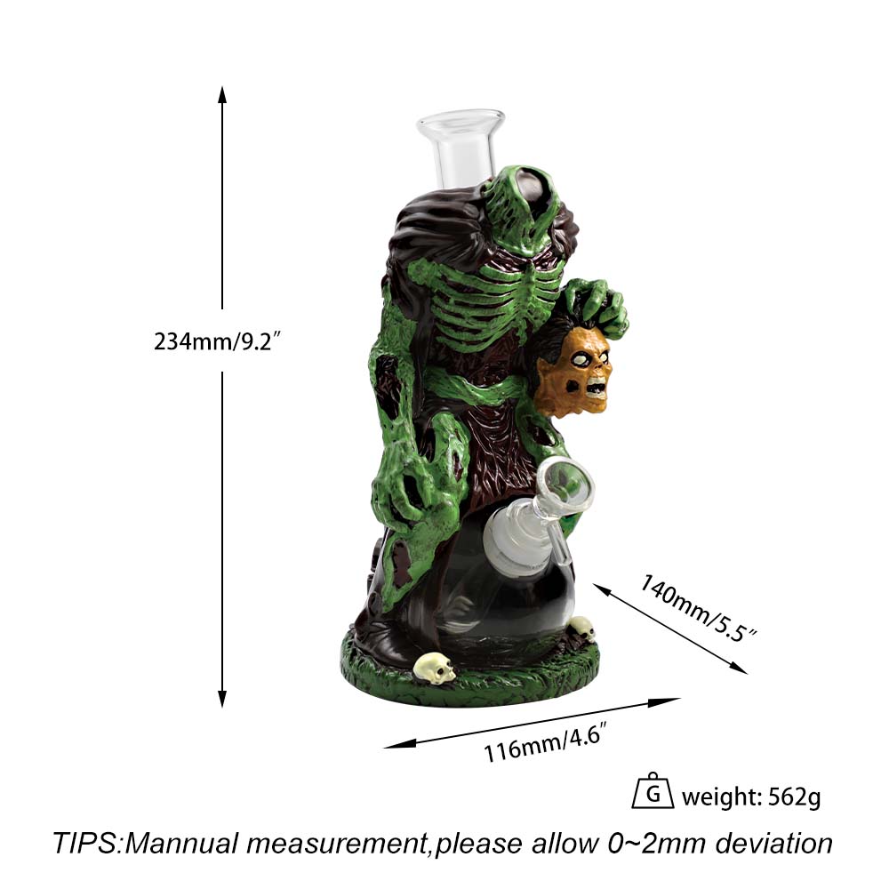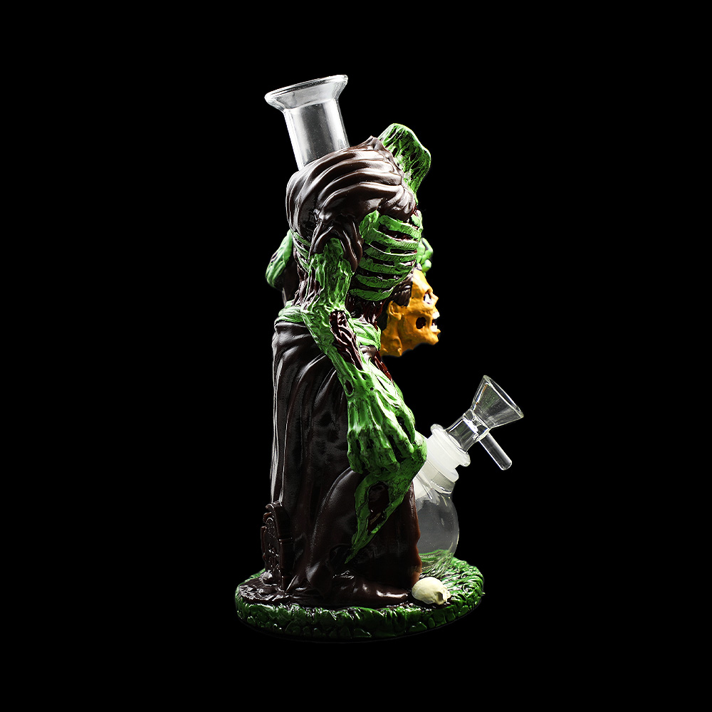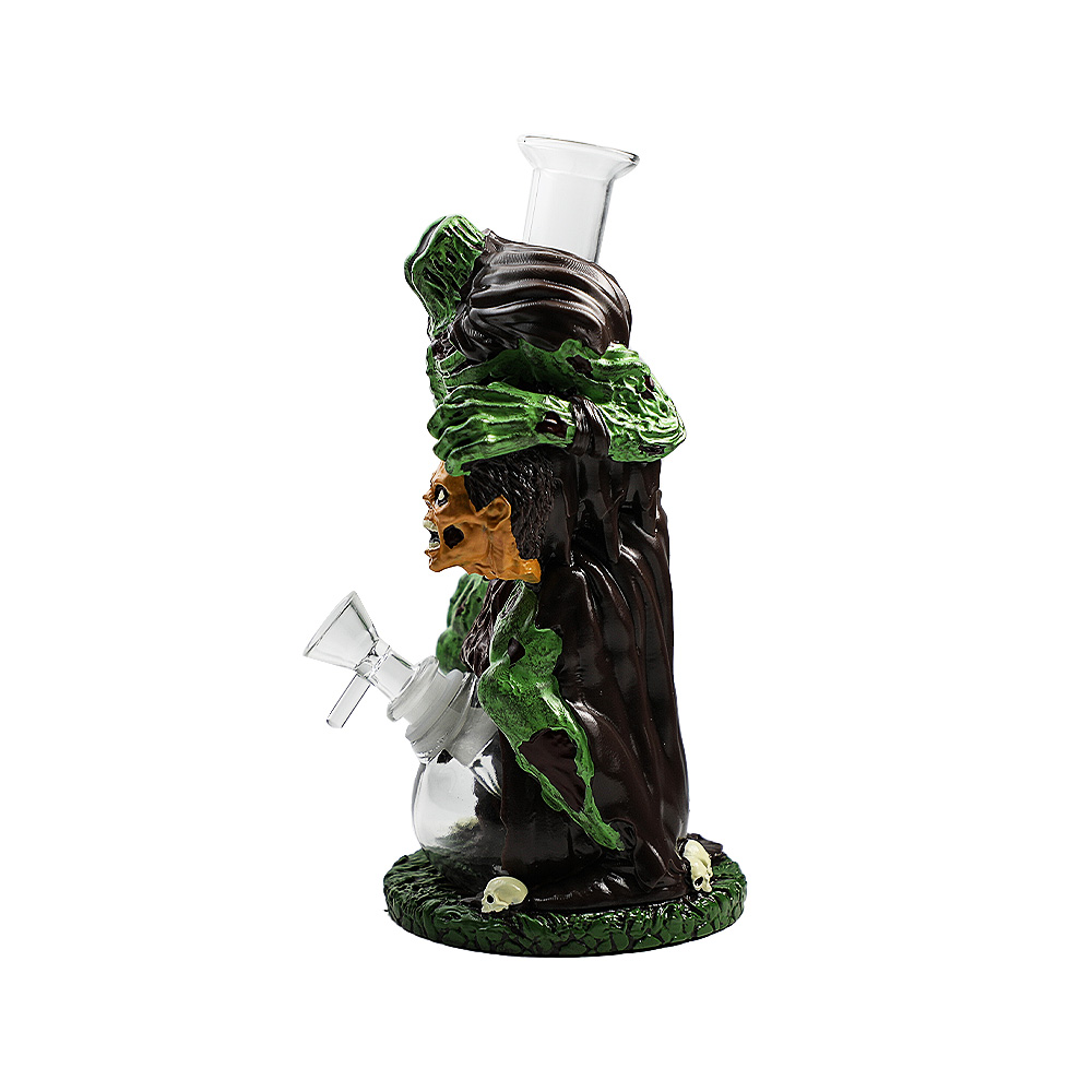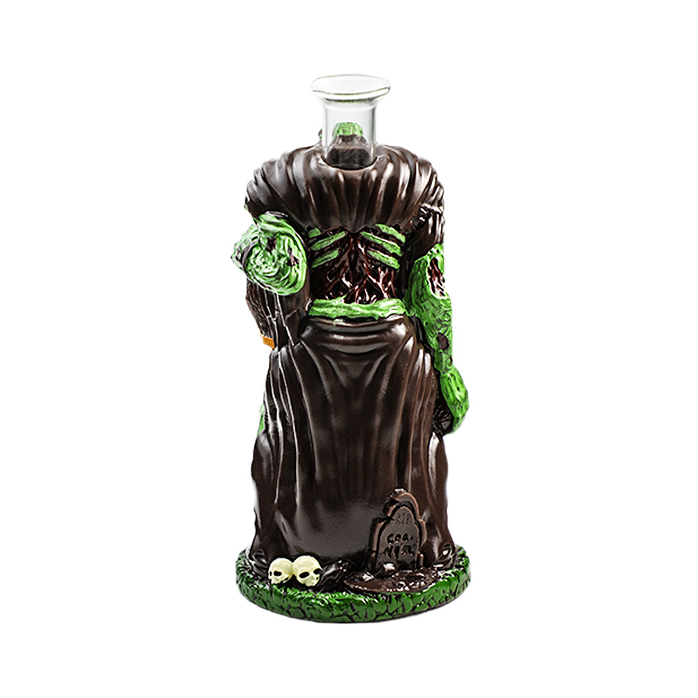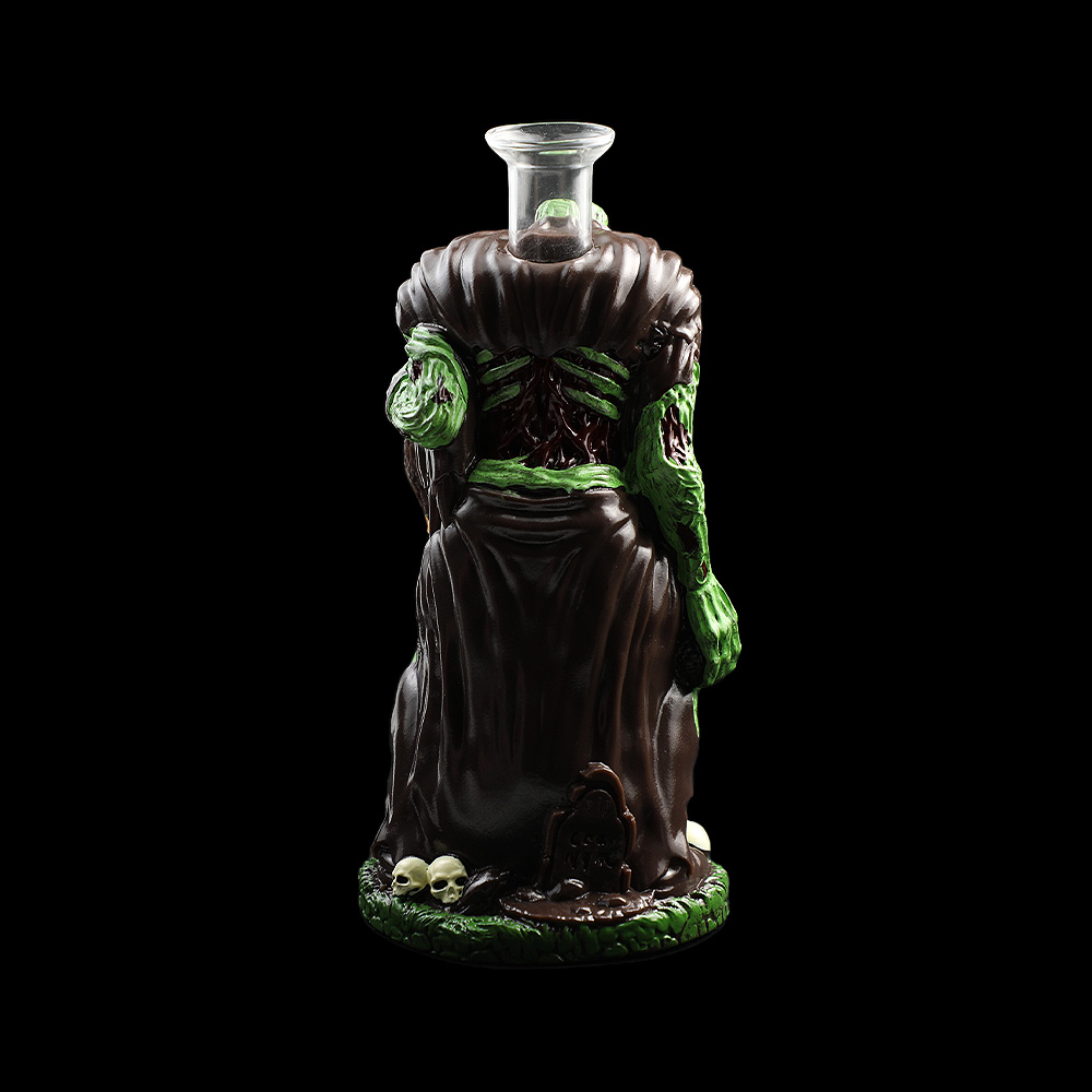 | Description | Emerging from Sleepy Hollow's mist, this 9.2-inch Headless Horseman cuts a spectral figure,his cloak-wrapped torso reaching toward the void while a 5.5" tombstone base anchors the phantom rider. Cast in eerie absinthe greens across 234mm of PVC, the sculpted steed integrates ghostly glass chambers accepting your 14mm bowl and downstem. A haunting trophy for collectors who savor legends wrought in smoke and shadow. |