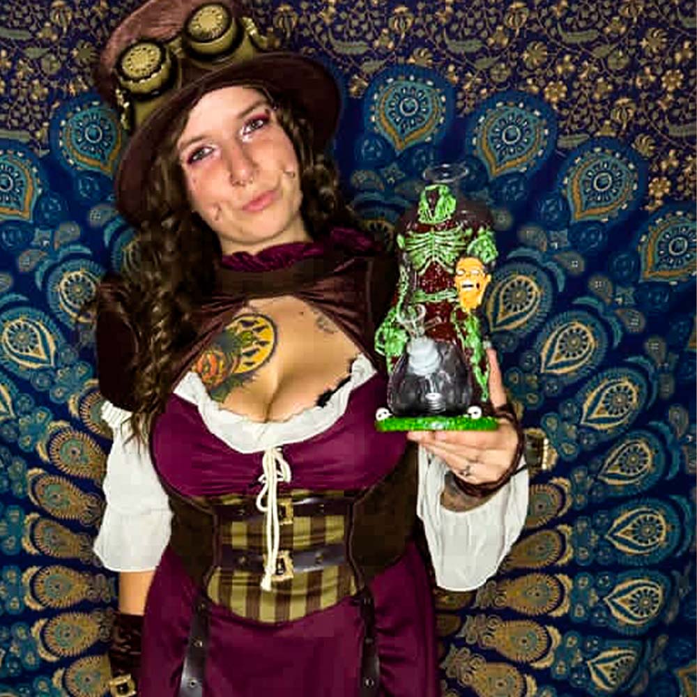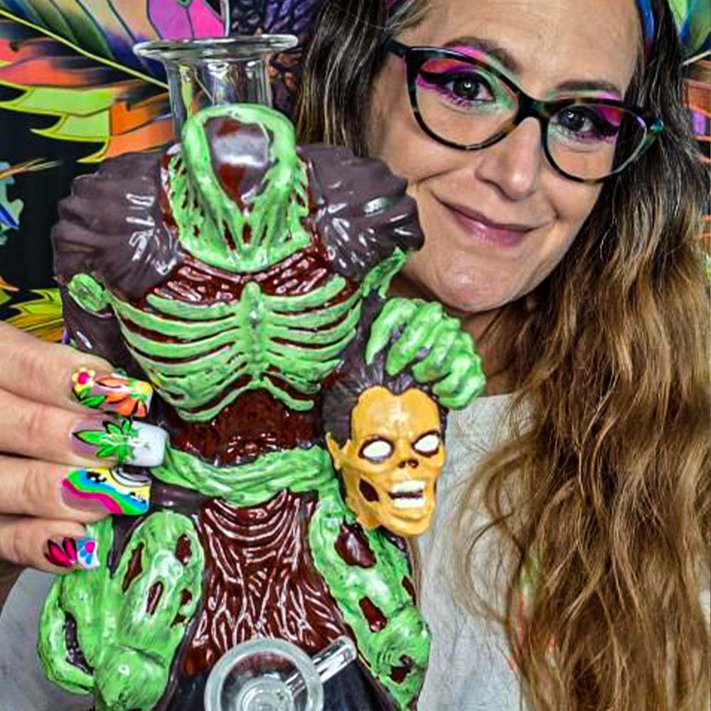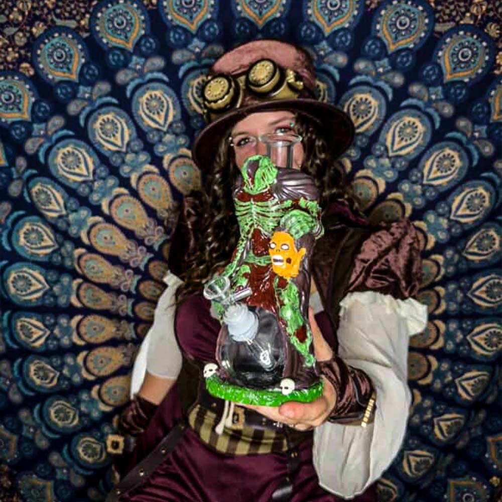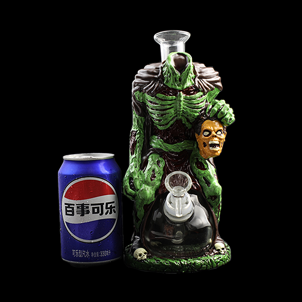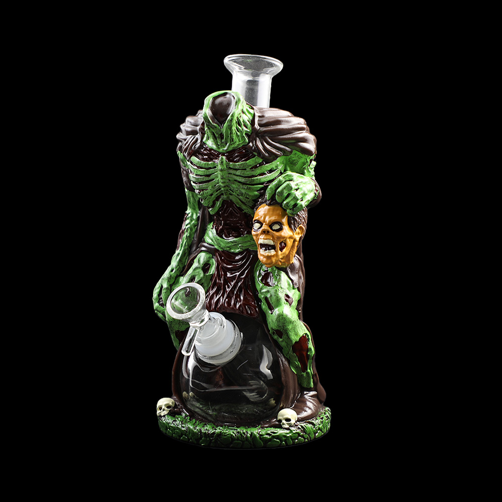 | Description | Emerging from Sleepy Hollow's mist, this 9.2-inch Headless Horseman cuts a spectral figure,his cloak-wrapped torso reaching toward the void while a 5.5" tombstone base anchors the phantom rider. Cast in eerie absinthe greens across 234mm of PVC, the sculpted steed integrates ghostly glass chambers accepting your 14mm bowl and downstem. A haunting trophy for collectors who savor legends wrought in smoke and shadow. |