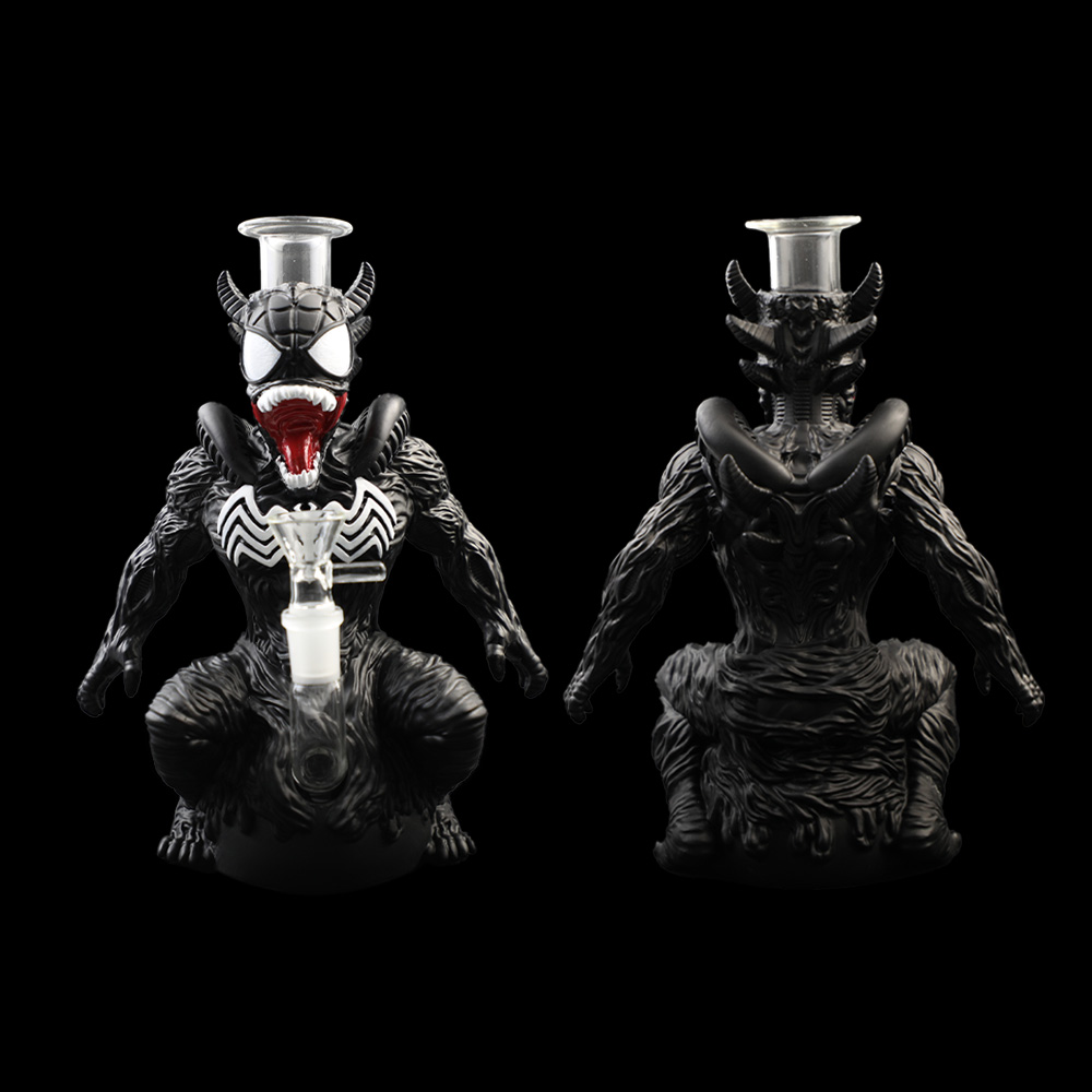 For fans of epic anti-heroes, this 9.6-inch water pipe is a must-have. Expertly crafted to resemble a fearsome fusion of alien and superhero, it boasts incredible detail from its textured body to its iconic white spider emblem. More than just a piece, it's a statement for your collection, promising both eye-popping aesthetics and a formidable smoking experience.