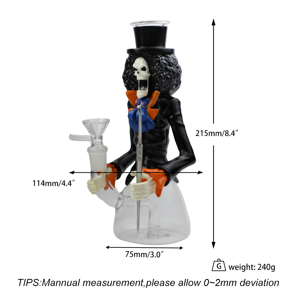This bundle includes: YHS Smoke 8.4″ PVC Brook Water Pipe*1 YHS Smoke 3.1″ Mr. Skeleton Hand Pipe*1 Accessories:14MM Glass bowl*1,Glass bowl*1 Size:Height: 295mm (12″) Color: As in picture Material:Silicone,PVC+glass
