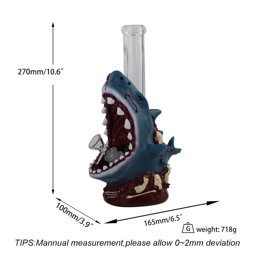 This bundle includes: YHS Smoke 10.6″ Zombie Shark Water Pipe Accessories:14MM Glass bowl*1,Glass Downstem*1,Silicone Downstem*1,Glasss bowl*1 Size: Height: 270mm (10.6″”) Color: As in picture Material:PVC,Glass,Resin