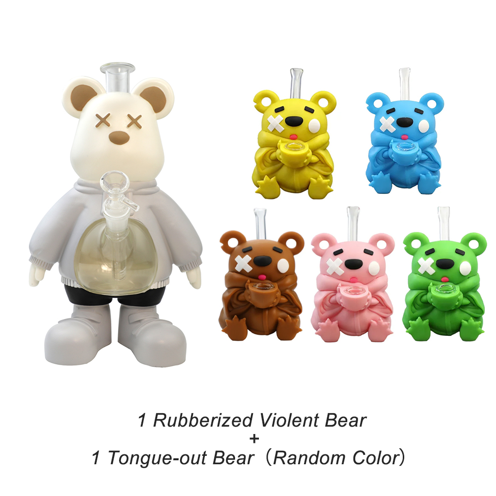 This bundle includes: YHS Smoke 11.1″ Gloomy Bear Water Pipe*1 YHS Smoke 4.9″ Tongue Spitting Bear Water Pipe*1 Accessories:14MM Glass bowl*1,Glass bowl*1 Size: Height: 284mm (11.1″) Color: As in picture Material:Silicone,PVC+glass